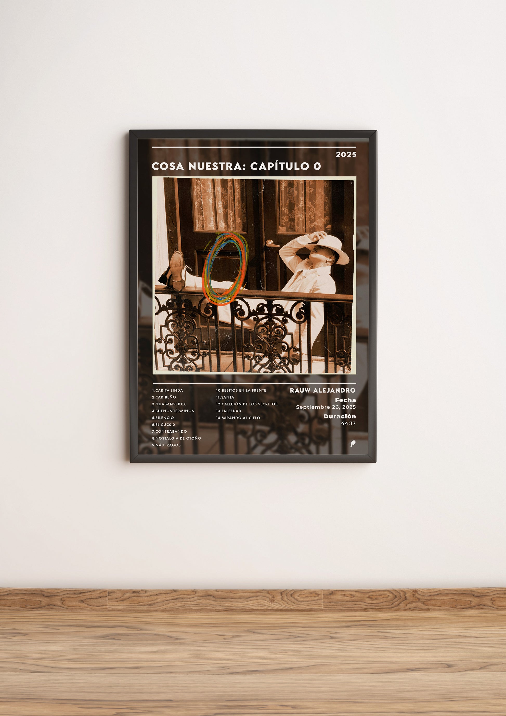 Añade un toque de nostalgia y elegancia a tu espacio con este póster inspirado en el álbum "Cosa Nuestra: Capítulo 0" de Rauw Alejandro. Impreso en un papel de alta calidad de 250g/m² y enmarcado cuidadosamente para resaltar sus tonos sepia y detalles clásicos, esta pieza captura la esencia de momentos íntimos y relajados, evocando tranquilidad y reflexión. Perfecto para aquellos que buscan una obra de arte con un estilo atemporal que realza cualquier ambiente, ideal para añadir carácter y calidez a tu hogar u oficina.
