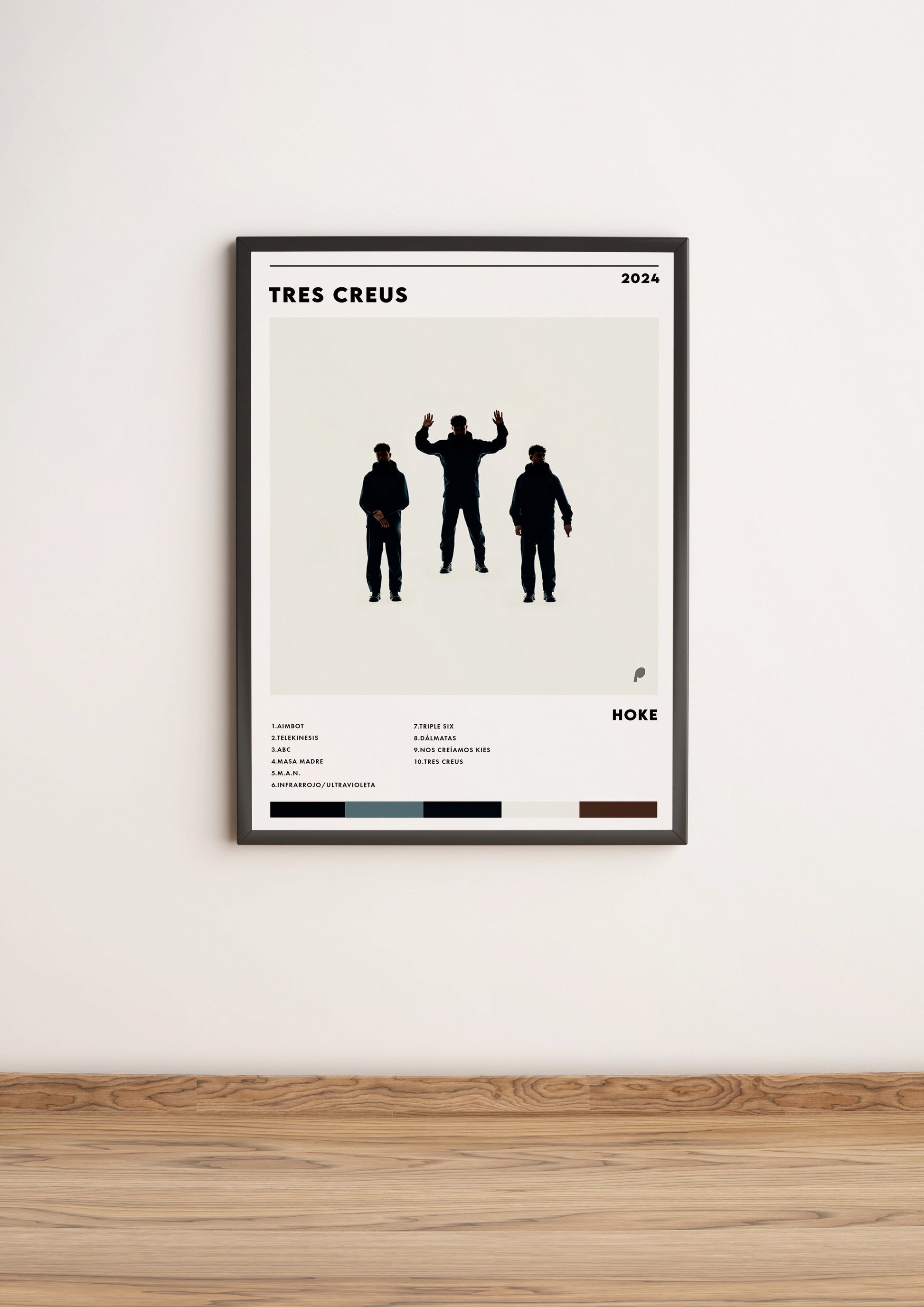 Añade un toque minimalista y elegante a tu espacio con este cuadro inspirado en el álbum 'TRES CREUS' de Hoke. Impreso en papel premium de 250g/m² y enmarcado con un diseño sobrio y sofisticado en policloruro de vinilo reforzado con aluminio y cristal, esta pieza destaca por su composición limpia y contemporánea. Perfecto para los seguidores del rap y la música alternativa, este cuadro es ideal para transformar cualquier habitación en un rincón lleno de estilo y personalidad.